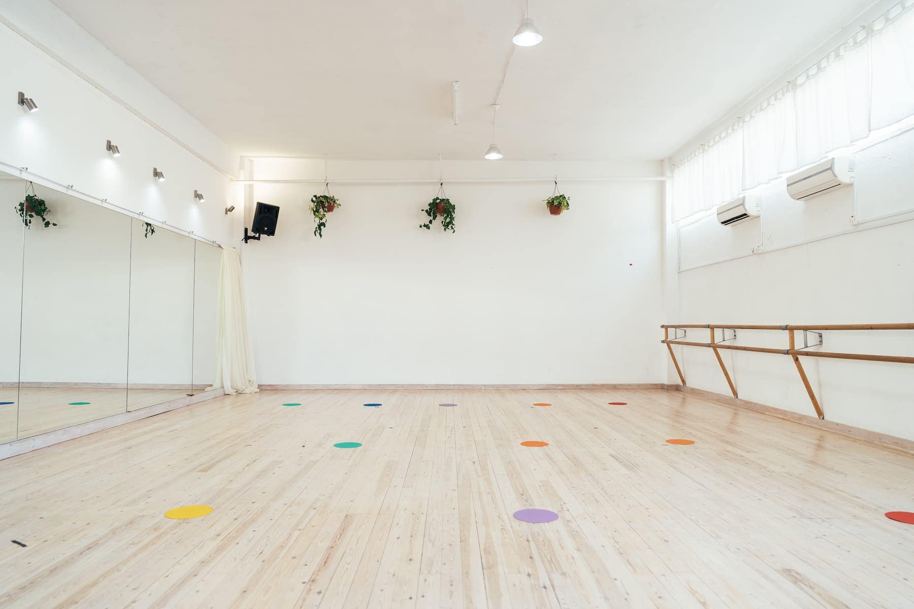 We have equipment for youth classes including floor spots and various movement props, as well as Pilates equipment and even top-quality aerial scarves in Studio 1.