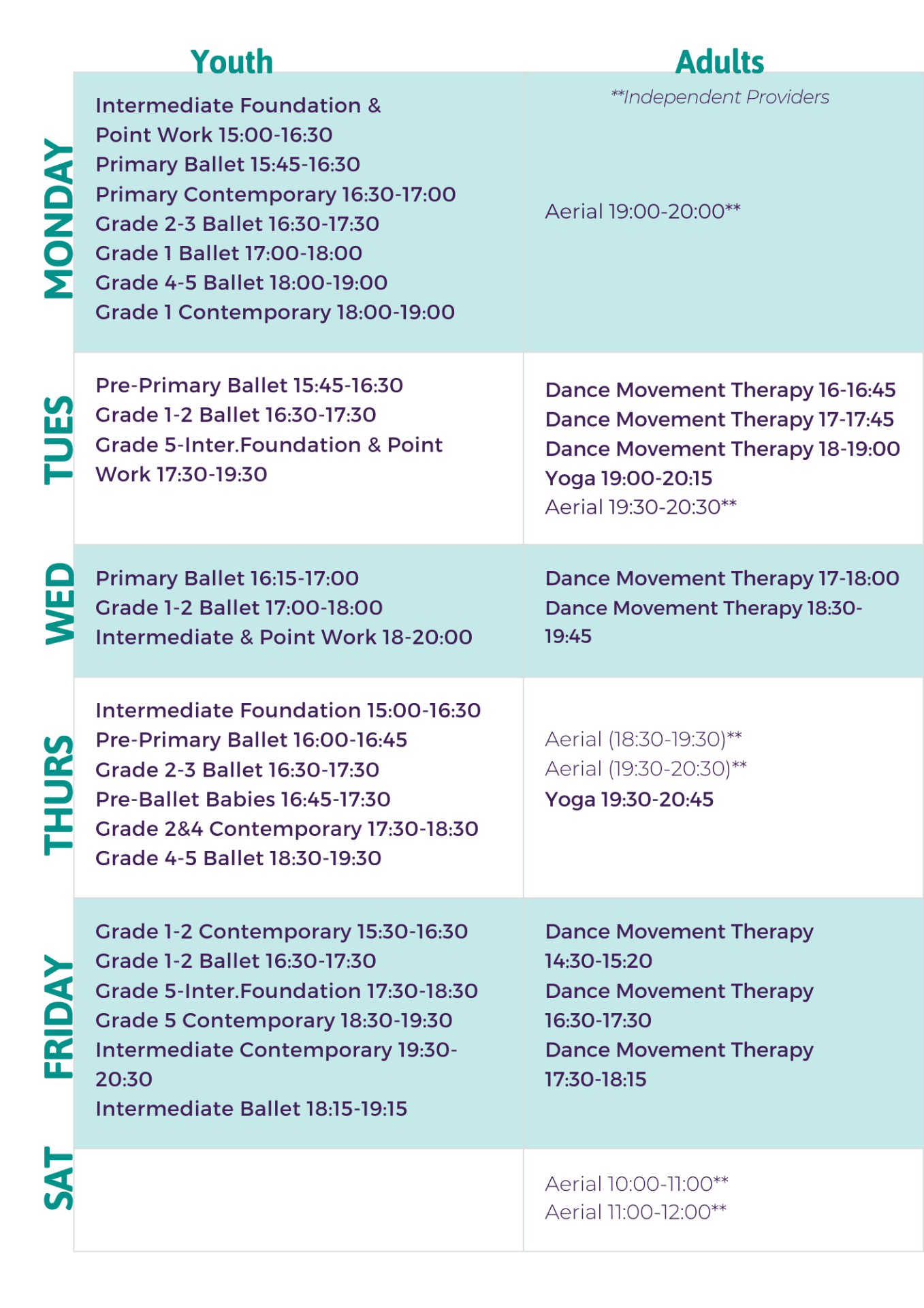 Here you can find the schedule for each of our programs.