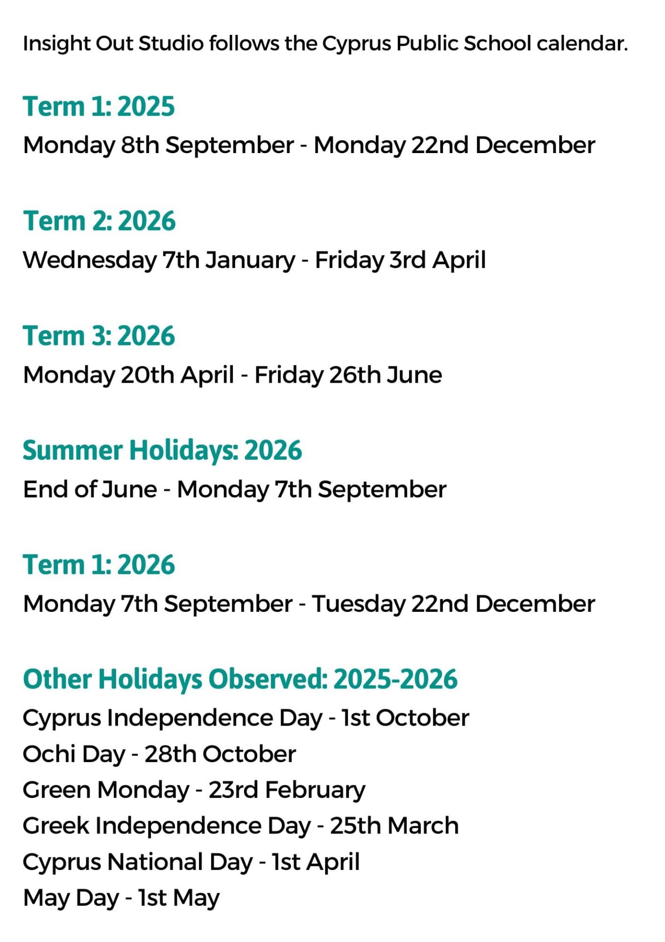 Our 2025-2026 Class Schedule